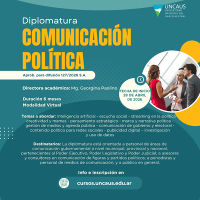 UNCAUS abre una diplomatura que combina política, redes e inteligencia artificial La Universidad Nacional del Chaco Austral presenta una nueva propuesta académica de altonivel: la Diplomatura en...Leer más Actualidad