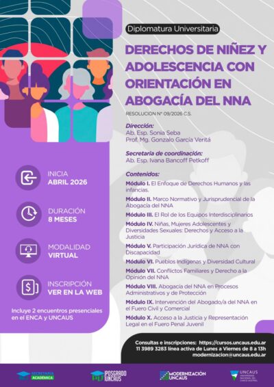 Apuesta académica: la UNCAUS abre una diplomatura en Derecho de niñez y adolescencia Con el objetivo de fortalecer la formación especializada en la protección integral de derechos,la Universidad Nacional...Leer más Actualidad